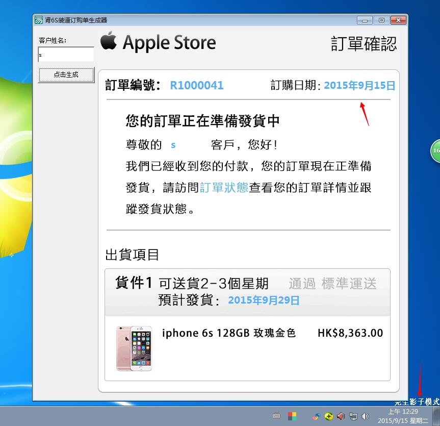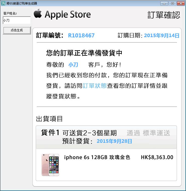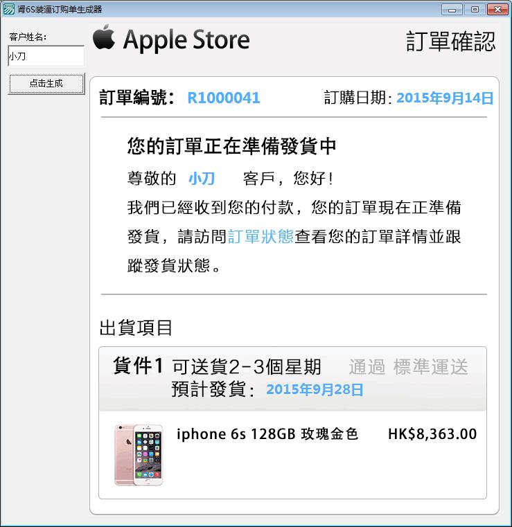 苹果6S订单图装逼生成器 随机订单号超逼真