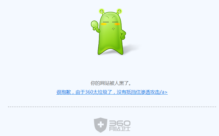 你的网站被人黑了。很抱歉,由于360太垃圾了,没有抵挡住渗透攻击/a>