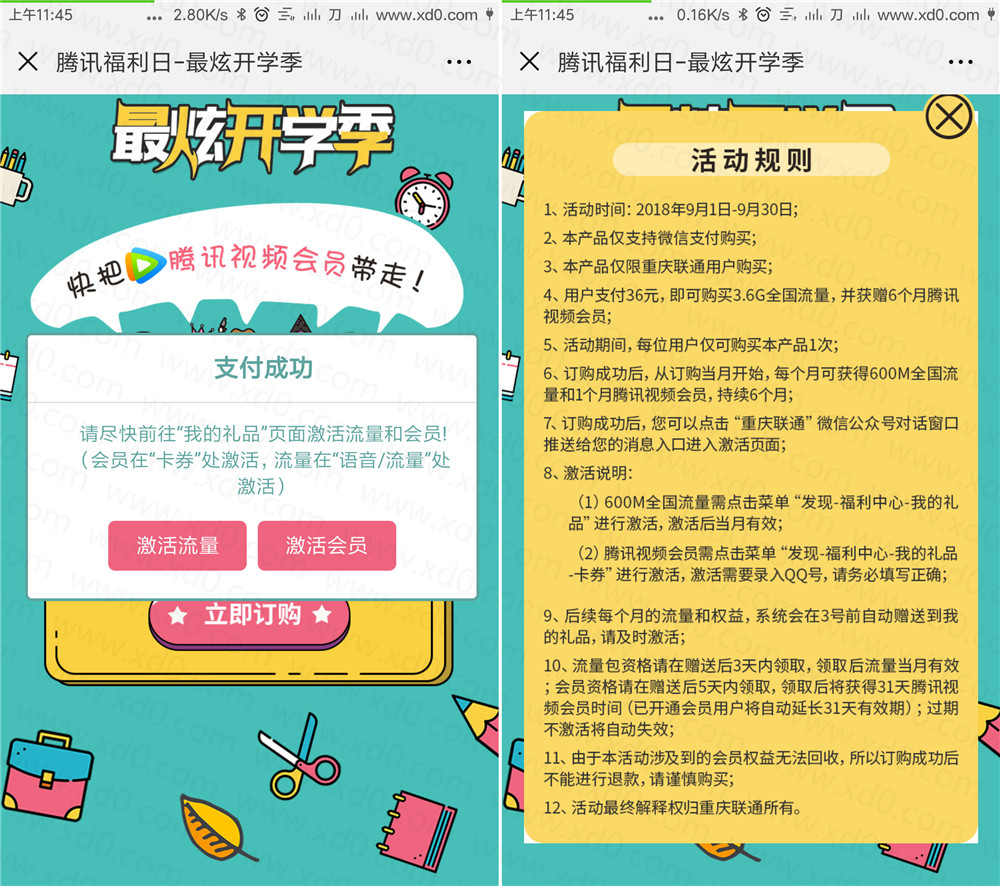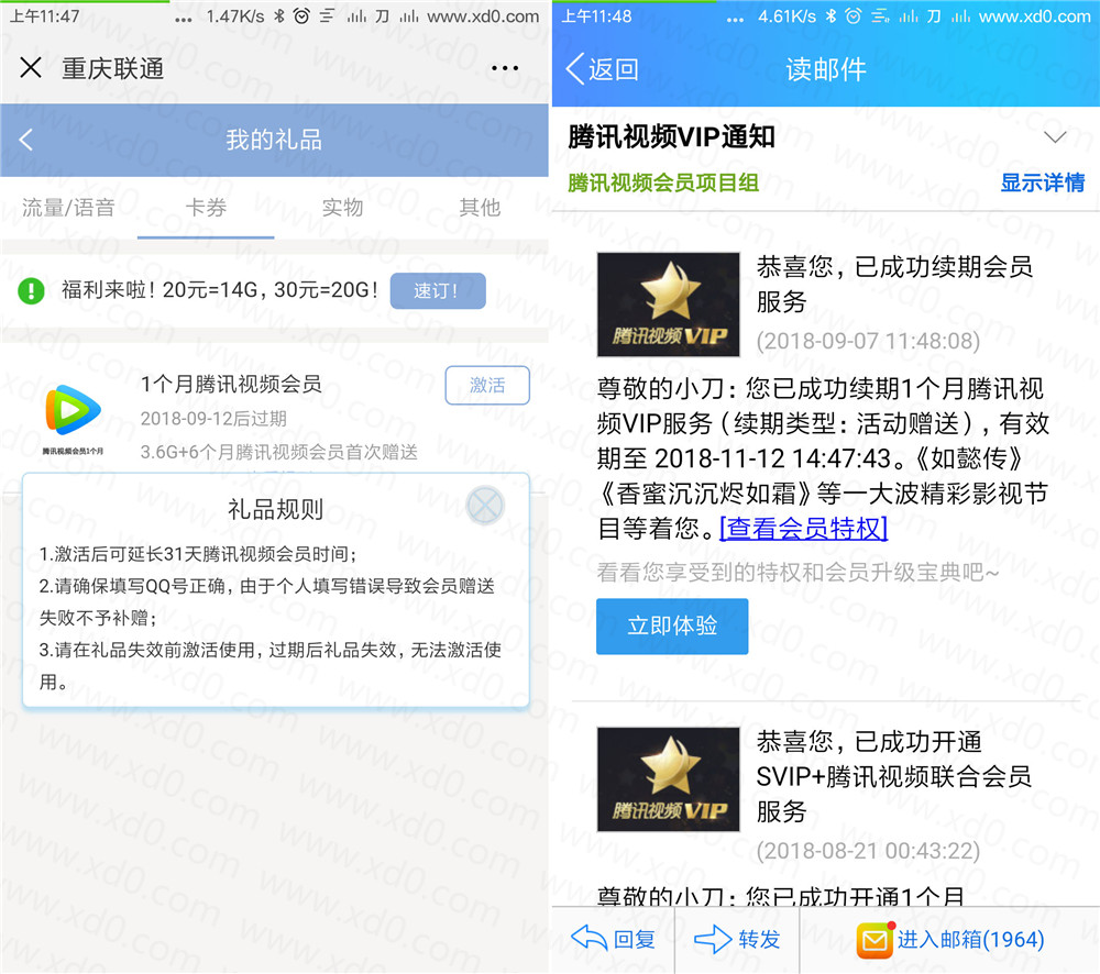 只能激活腾讯视频VIP,流量需要重庆联通才可以激活