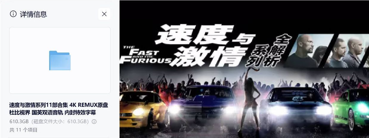 速度与激情系列11部合集 4K REMUX原盘 杜比视界 国英双语音轨 内封特效字幕