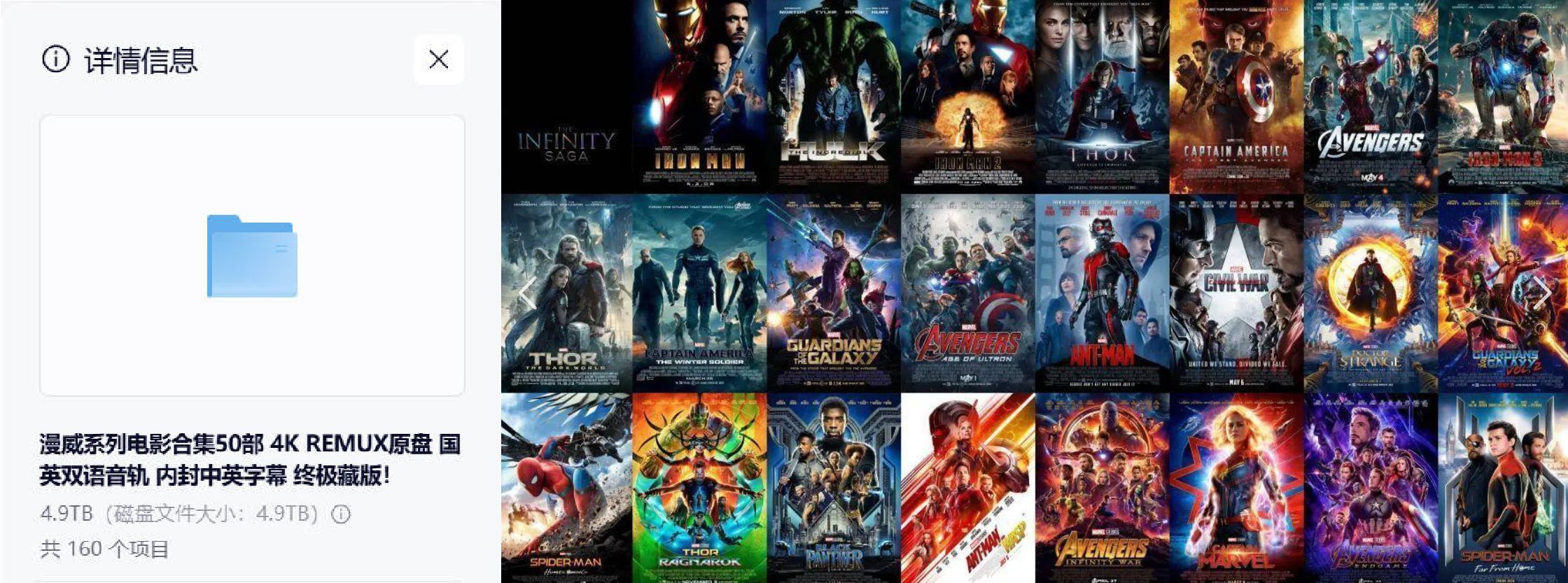 漫威系列电影合集50部 4K REMUX原盘 国英双语音轨 内封中英字幕 终极藏版!